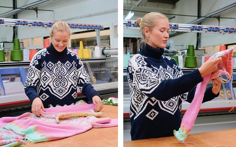 Samarbeidet med Dale of Norway har gitt Ingrid spillerom for egne ideer og tanker. “Linn, som er designer, har gjort en helt fantastisk jobb, både med utvikling av mønster basert på mine innspill, og ikke minst med jobben med fargekartet”, sier Ingrid og forteller at Dale of Norway er utrolig dyktige og profesjonelle å samarbeide med.