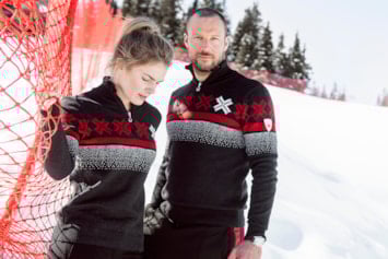 På bildet: Nina Haver-Løseth og Aksel Lund Svindal i VM-genseren.