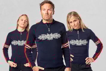 Bildet viser norske alpinister i den offisielle genseren til VM i alpint.
