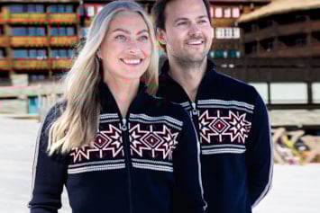 På bildet: alpinistene Jan Einar Thorsen og Astrid Lødemel i OL-genseren.