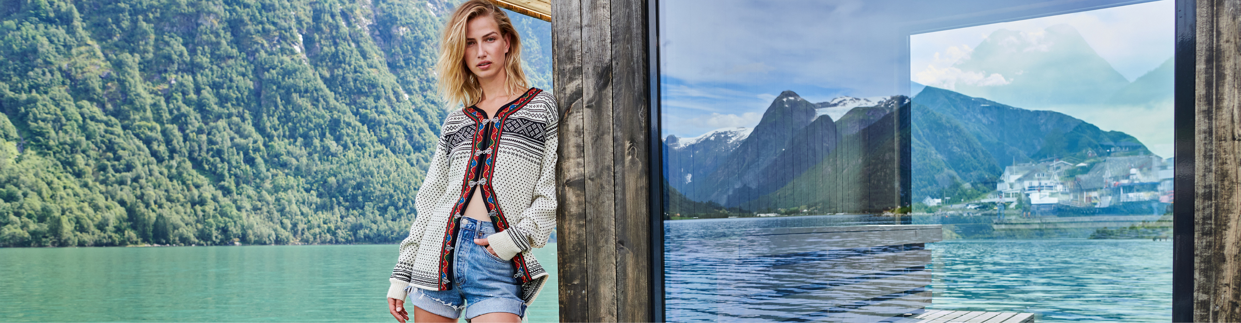 Ull er ideelt på en aktiv ferie i fjellet og svale kvelder langs fjorden. Kledd i en ullgenser fra Dale of Norway, reiser du enkelt fra fjord til fjell – og gjerne videre til fest, hele sommeren! Oppdag nyheter og ikoniske klassikere fra Dale of Norway.