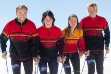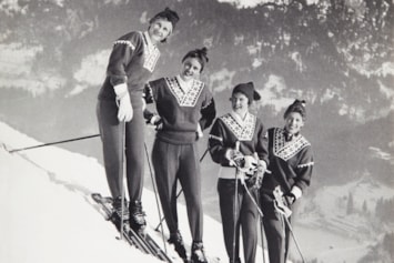 Bildet: Genseren ble også brukt av norske utøvere i alpin-VM i Bad Gastein, Østerrike, samme år. Fra venstre: Astrid Sandvik, Berit Stuve Nesje, Marit Haraldsen Foss og Inger Bjørnbakken. Genseren ble brukt som konkurranseantrekk av utøverne!