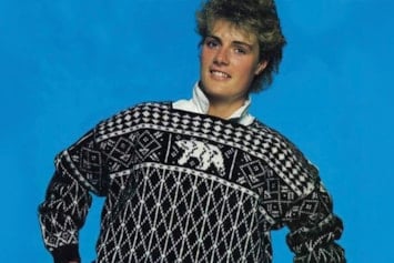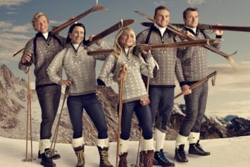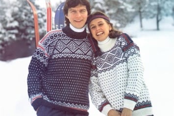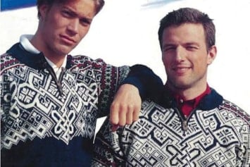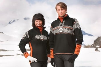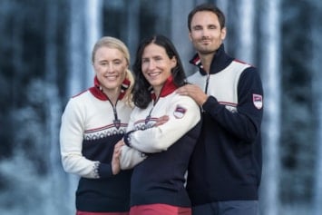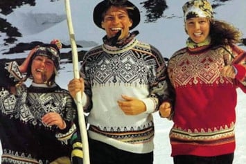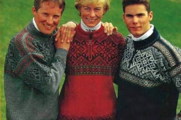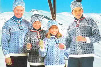 Bildet: Genseren ble også brukt av norske utøvere i alpin-VM i Morioka, Japan, samme år. Her representert ved Hans Engelsen Eide (freestyle/kulekjøring), Hilde Synnøve Lid (freestyle/hopp) og Astrid Lødemel (alpin). Lødemel tok sølv i utfor og bronse i super-G.