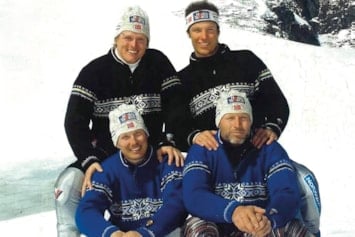 Genseren ble også brukt av norske utøvere i alpin-VM i Bormio, Italia, samme år. På bildet ser vi alpinistene Bjarne Solbakken og Aksel Lund Svindal (bak), og Truls Ove Karlsen og Lasse Kjus (foran).