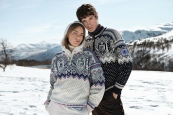 Bildet: Mønsteret på den offisielle genseren til ski-VM i Trondheim 2025 er inspirert av mesterskapets verdier: mangfold og inkludering, samtidig som det henter motiver fra historiske kulturminner i Trondheim.